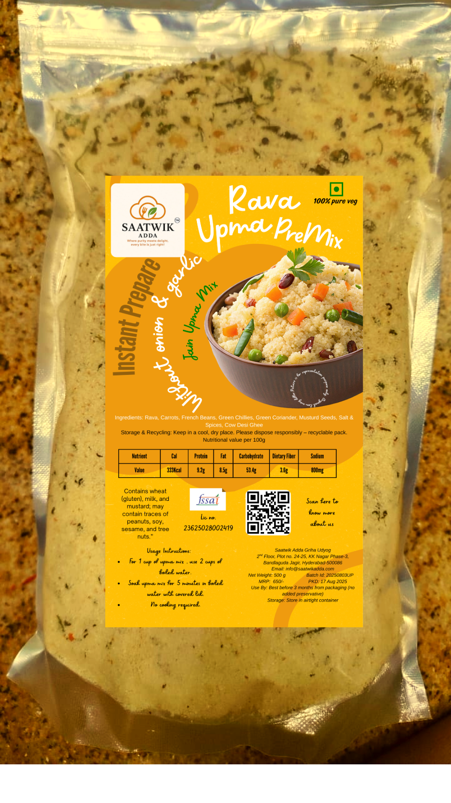 Buy Instant Rava Upma Premix Online – Ready in 5 Min with Desi Ghee – Saatwik Adda