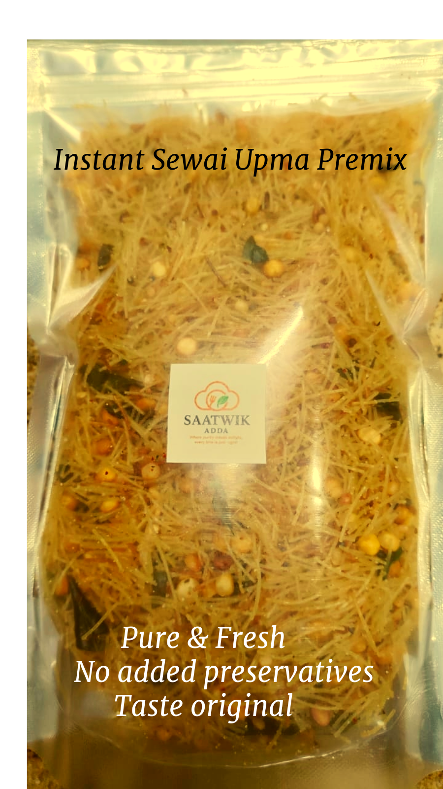 Experience the authentic taste of homemade sewai upma in just 5 minutes with Saatwik Adda's Instant Sewai Upma Premix – packed with vermicelli, dal, and pure cow desi ghee for a wholesome, delicious meal anytime.